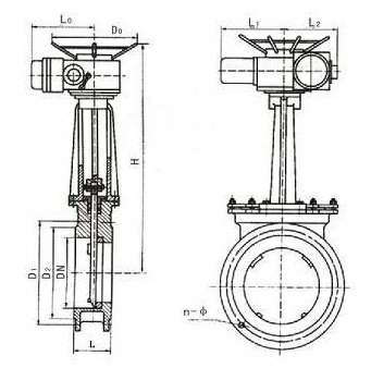 公称压力 | DN | L | D1 | D2 | H | D0 | L0 | L1 | L2 | N-Φ | 电装型号 |