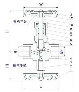 公称通径 DN | M1 | M2 | L | H | H1 | D0 |